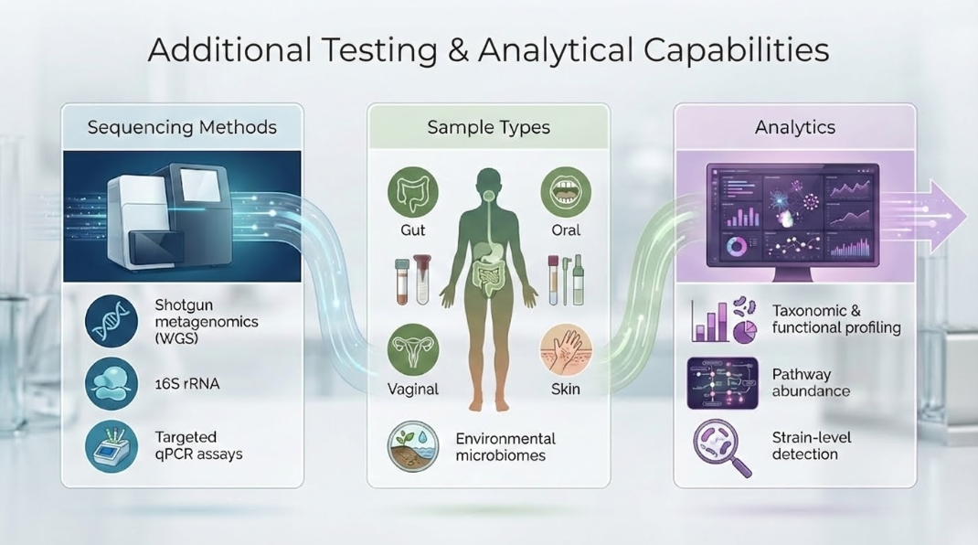 Discover how our advanced testing can transform your health by providing deep insights into your microbiome, powered by cutting-edge technology and expert analysis.